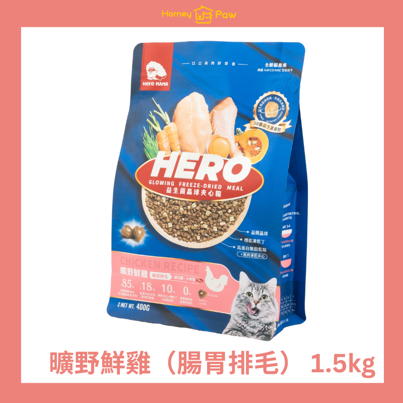 【全新升級】HeroMama 益生菌晶球夾心糧 – 曠野鮮雞(腸胃排毛)1.5kg