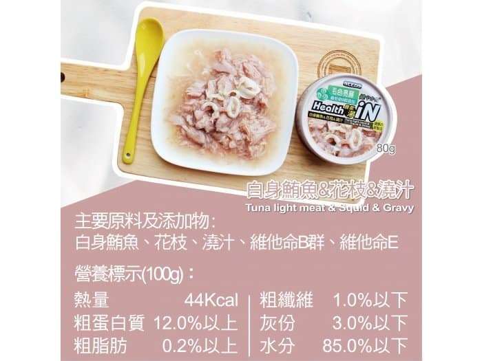 ⽩身鮪⿂+花枝+維他命B群 80g | Health iN 機能鮪⿂湯罐