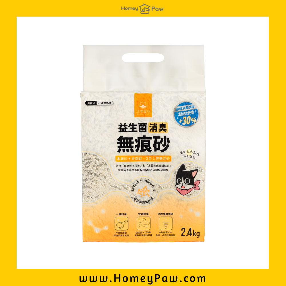 益生菌消臭無痕砂(條型豆腐砂+木薯砂) 2.4kg|汪喵星球