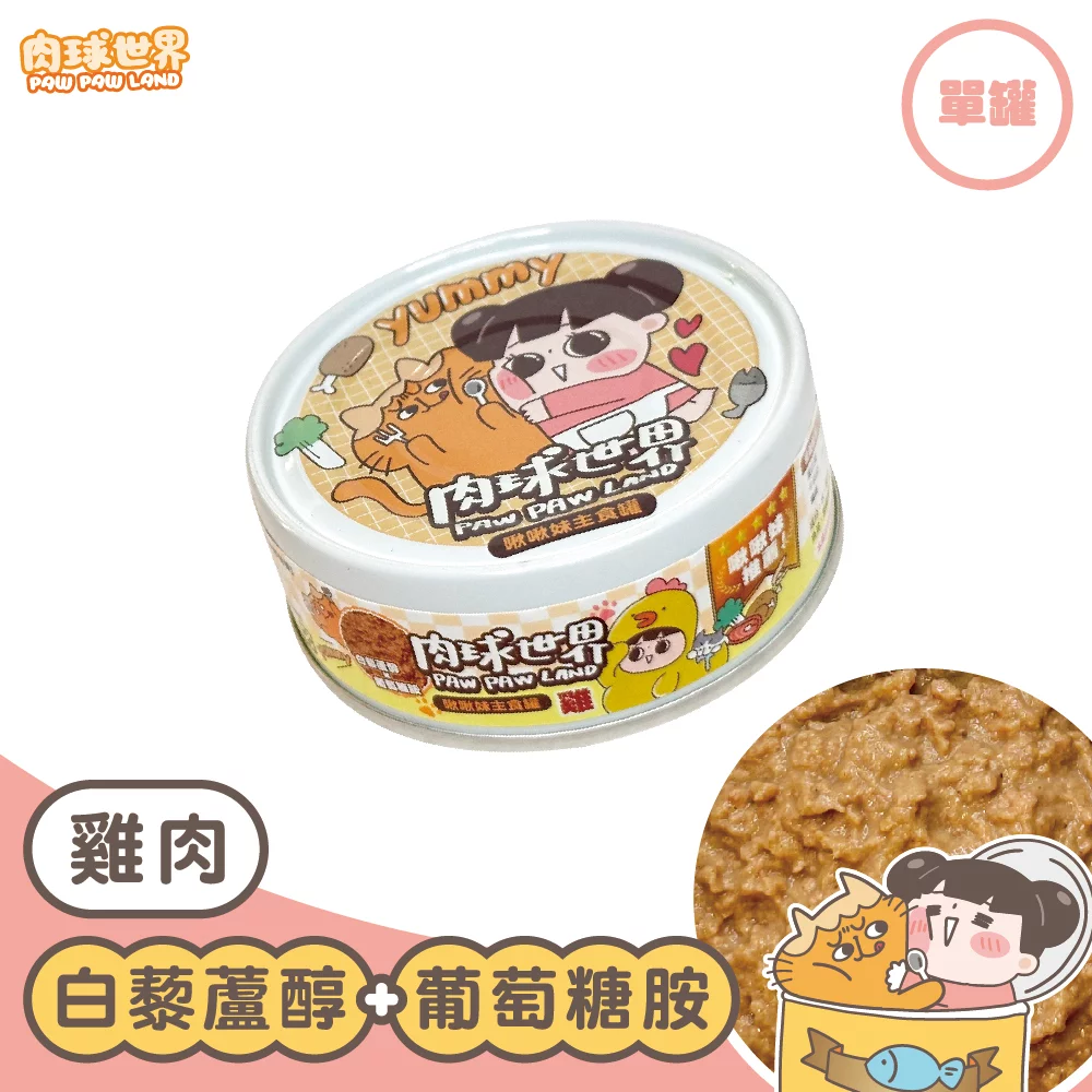 肉球世界 x 啾啾妹 貓咪主食罐 – 雞肉 (白藜蘆醇X葡萄糖胺) 80g