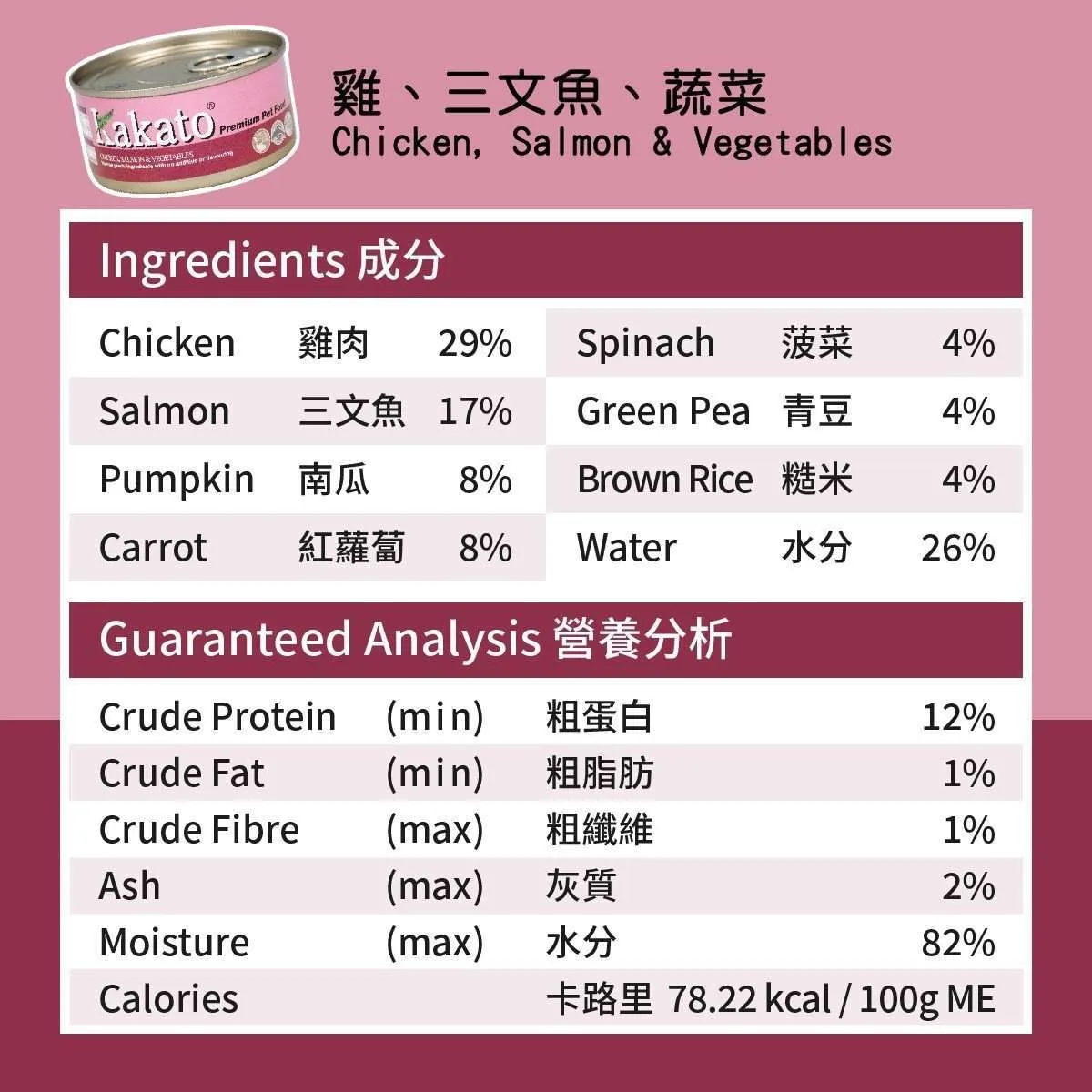 肉絲罐頭 - 雞、三文魚、蔬菜 - 貓狗適用 - 170g | Kakato 卡格 數量