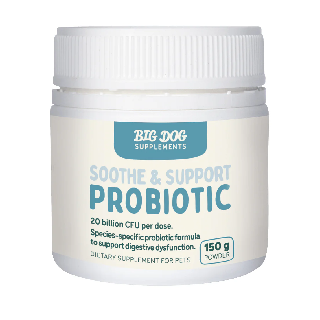 Big Dog 益腸粉是高強度混合益生菌配方,每 5 克含 200 億益生菌。 該配方包含 5 種宿主特定菌株,專為犬類健康和活力而開發。 加上 5 種消化酶和天然益生元、青香蕉粉的額外好處,這種組合有助於整個消化道的健康。