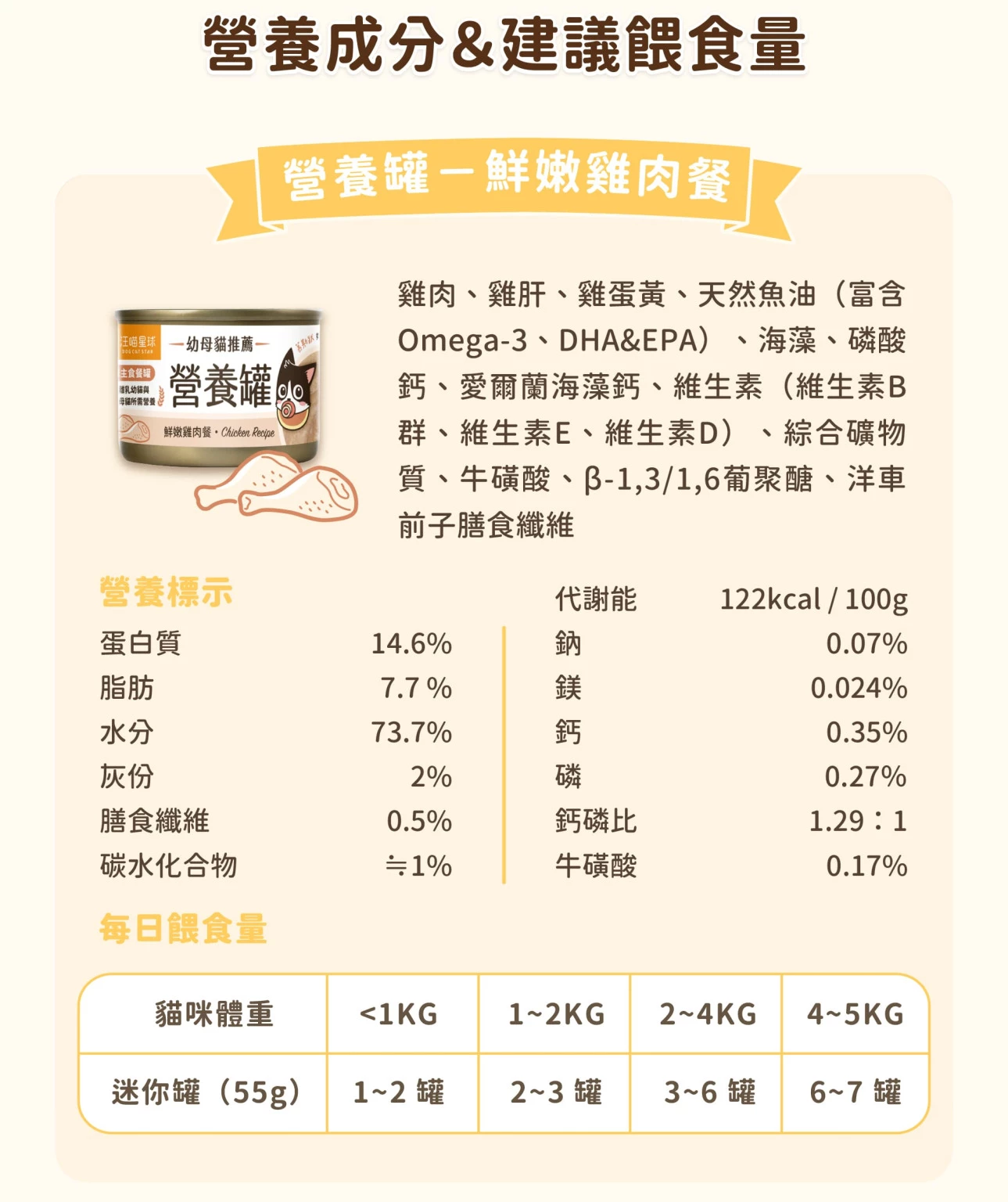 營養罐 鮮嫩雞肉 55g | 汪喵星球 幼母貓 迷你無膠早餐罐