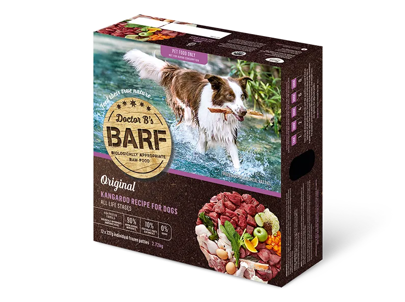 Dr. B 的袋鼠食譜BARF脂肪含量低,蛋白質含量高,是患有胰腺炎或肥胖症或其他需要低脂飲食的狗的理想選擇。 它對狗的所有生命階段都是完整和平衡的,但低脂肪使其不太適合作為成長中的小型犬、懷孕或哺乳期的母狗或高度活躍的工作犬的唯一飲食。 它可以與其他 Dr. B 的“口味”一起輪流餵給這些狗。
