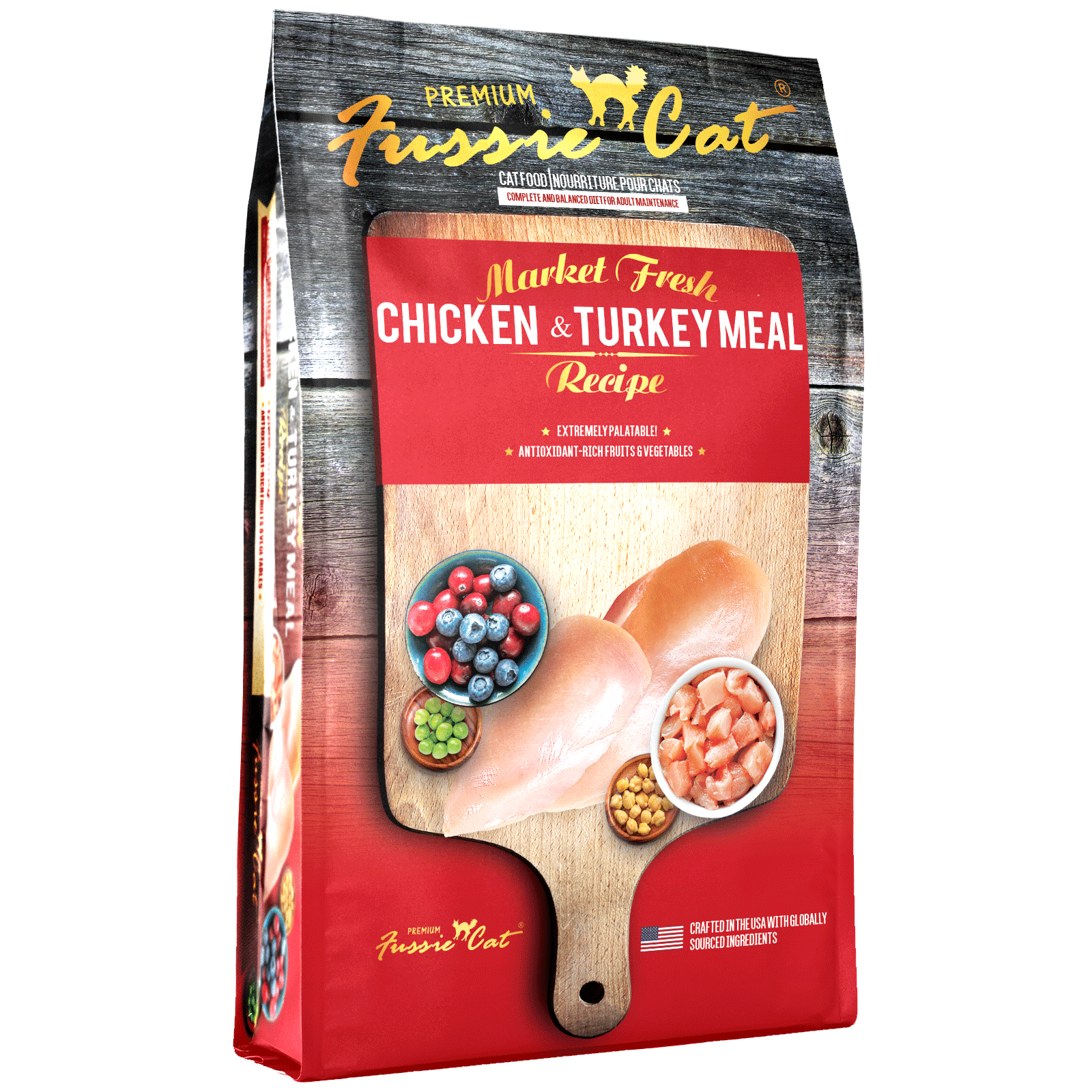 我們的高竇貓Market Fresh是以最新鮮、精緻及優質的食材所調製,例如含有完整優良蛋白質的雞肉及火雞肉,是攝取維他命B12、核黃素和磷的最佳來源。雞肉及火雞肉不單只是食品的首要成分,也是貓咪最喜愛的美味食物。