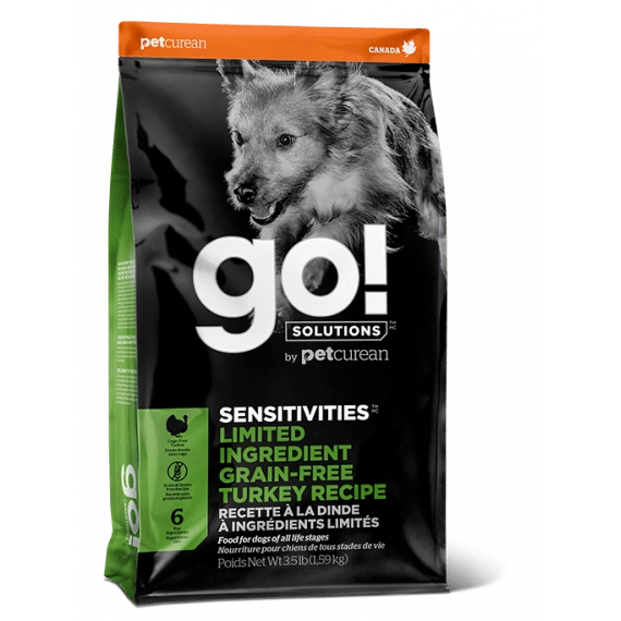 讓寵物遠離敏感食材!GO! SOLUTIONS 低敏美毛系列適合所有狗隻,特別是對食材敏感而需要特別膳食照顧的狗狗。配方以最少添加材料製造,為狗狗提供所有他們需要的營養,採用優質非籠養火雞肉為單一肉類蛋白質來源。