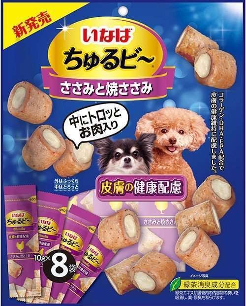 INABA 流心粒粒狗小食 – 雞肉+燒雞肉(皮膚健康) 10g x 8袋 (QDS-73)