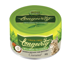 Nurture Pro椰子免疫增強肉絲主食罐是100%無穀物配方,首選成分來源為dual protein,含牛磺酸,賴氨酸和綠茶,為您的貓咪提供營養餐,從未如此簡單。