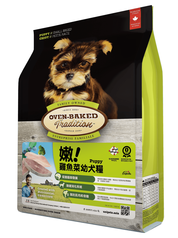 迎接新的家庭成員,為牠選一個安全而健康的佳餚,比什麼都重要!Oven-Baked Tradition幼犬糧由專業營養師調配,符合所有品種和體重的幼犬每天所需的營養,讓牠們打下良好健康基礎。以新鮮去骨雞肉作首要材料,配合均衡的鈣、磷含量,滿足發育時期的寶寶!