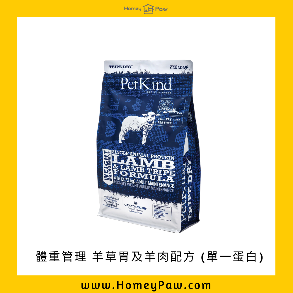 PetKind 無殼物狗糧 體重管理 羊草胃及羊肉配方(全羊單一蛋白)